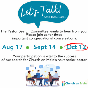 Join us for our second of three unified services & congregational conversations on October 12 at Prices Fork Elementary, beginning at 9:45 AM